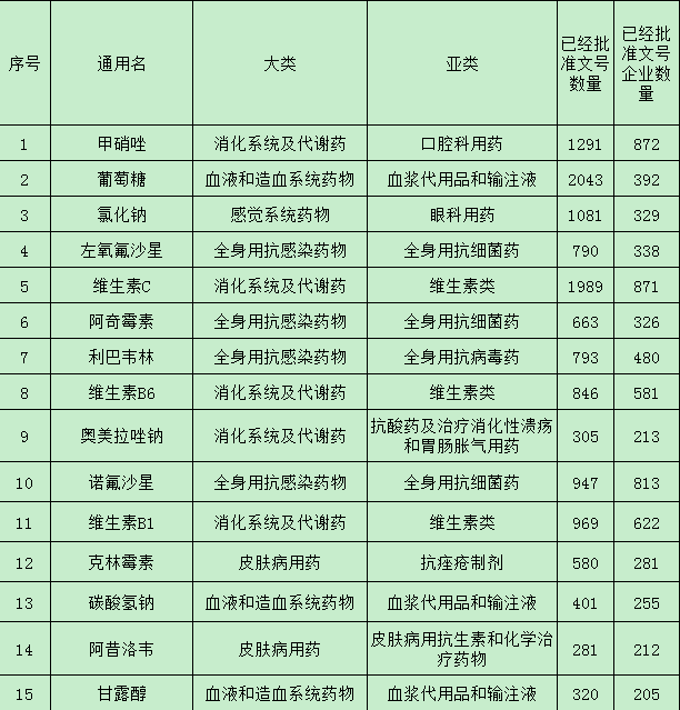 【同一药品已获批准文号企业数在20家以上的过度重复品种目录】